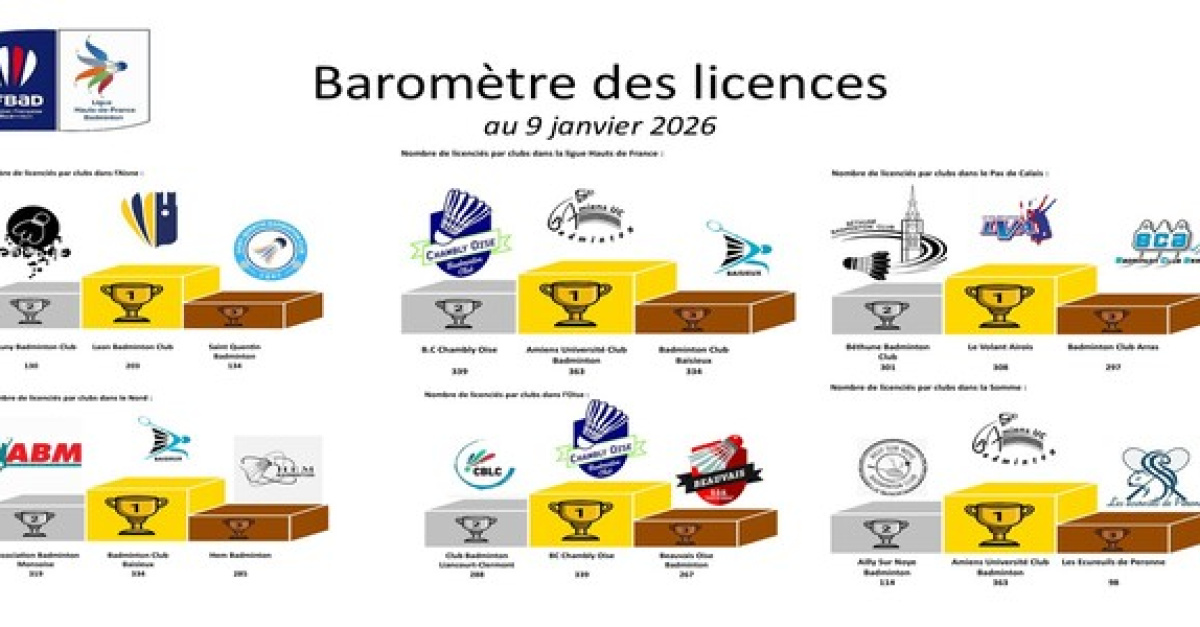 🥉 Beauvais Oise Badminton : 267 licenciés