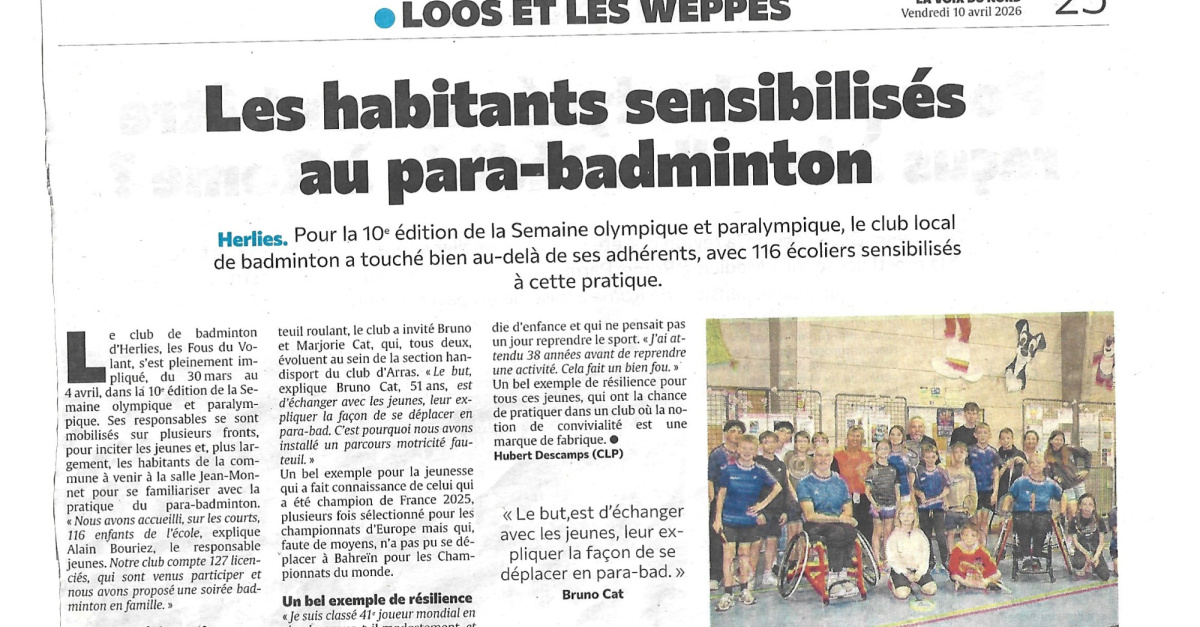 À l’occasion de la 10e édition de la Semaine olympique et paralympique, le club des « Fous du Volant » d’Herlies a frappé un grand coup pour la promotion du para-badminton.