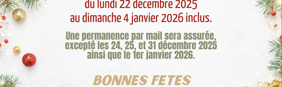 Notez bien : Une permanence par mail sera assurée, excepté les jours fériés (24, 25, 31 décembre 2025 et 1er janvier 2026).
